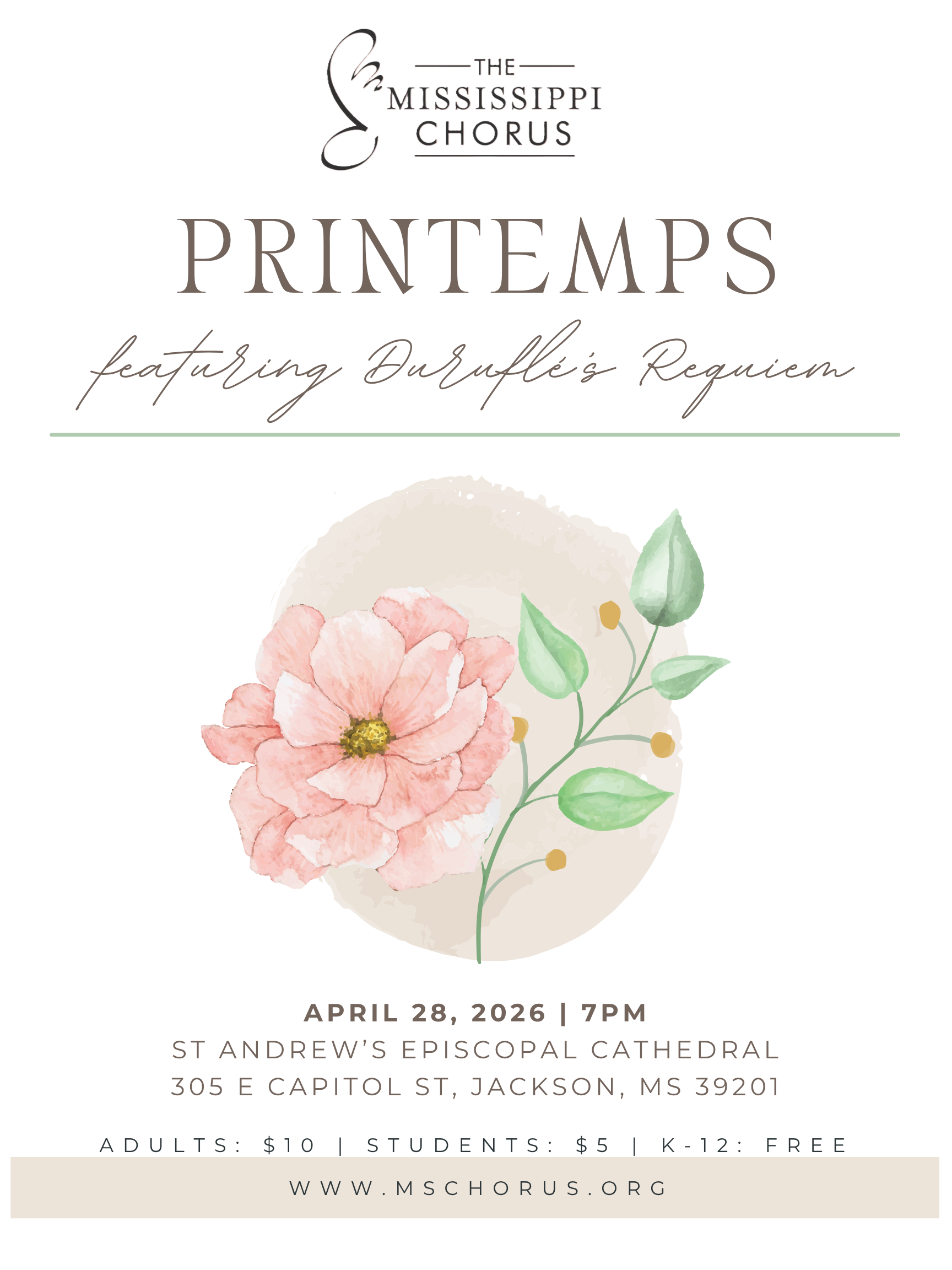 Join us for Printemps: Featuring Duruflé’s Requiem, an evening of beautiful French choral music celebrating the spirit of spring. The program includes Duruflé’s Requiem and Four Motets, featuring guest soloists and organ.